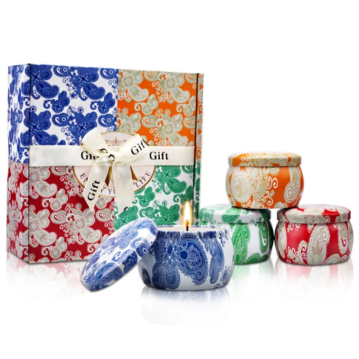 Factory Hot Selling 4 Pack Candle Luxury Gift Set Christmas Wedding Parties Gifts Soy Wax Colorful Box Candles In Stock