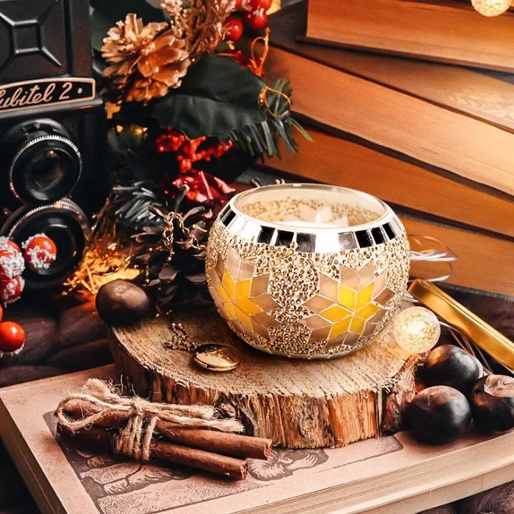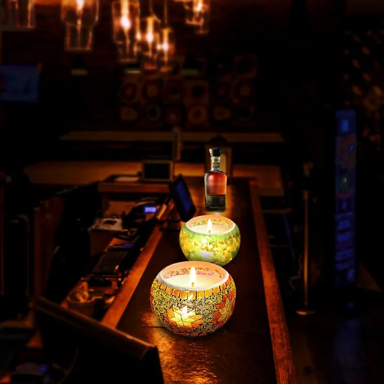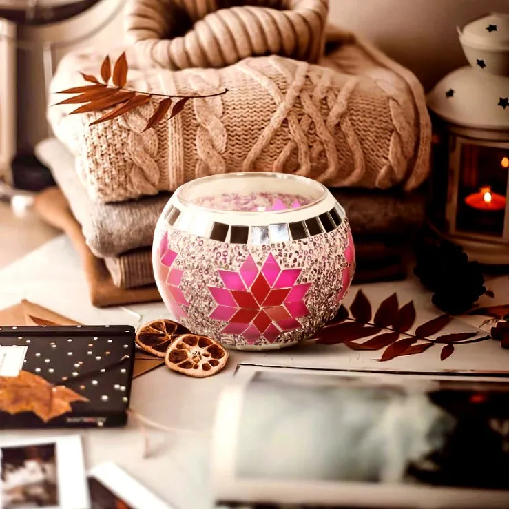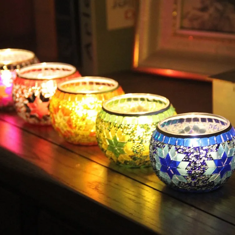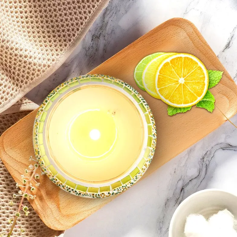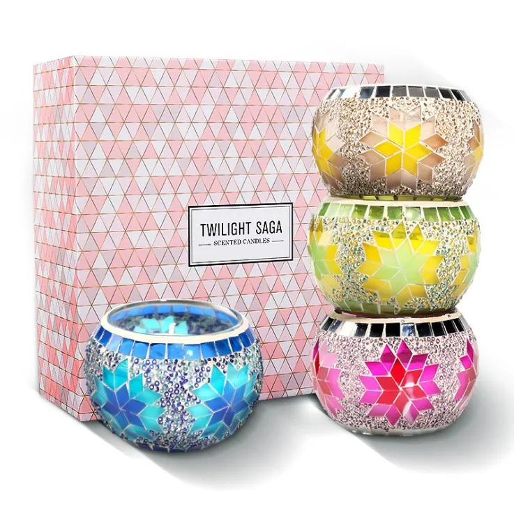 Our this Candle jar uses European color snow Mosaic glass candlestick